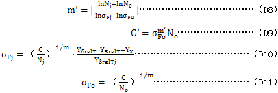 式中:Nj、σFj、YδrelTj的下标j表示靜強度時的值,見圖D1。
