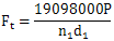 式中:F1——端面分度圓上的名義切向力,N;