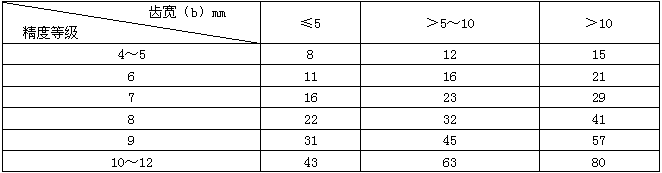 表3齒向公差Fβ μm