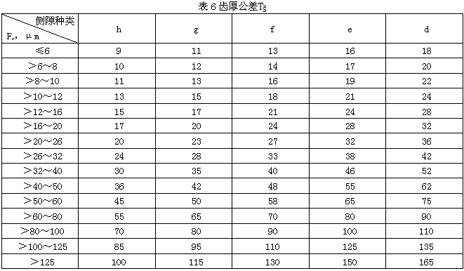 7.3評定齒輪傳動側隙的指标是 和TS。具體數值分别見表5、表6。