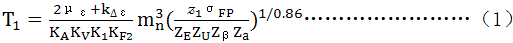 式(B1)與正文的公式(3)等效,其符号意義及取值同公式(3)。σHP應取大輪或小輪的小值代入式(B1)。對於人字齒輪,(2με+k△ε)按單側齒寬計,算得的T1值爲單側齒寬的名義轉矩。
