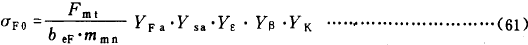 齒根應力基本值σF0是以載荷作用於齒頂爲計算基礎,然後利用重合度系數Yε,将齒頂加載時名義齒根應力轉換爲單對齒齧合區上界點加載時的值,再考慮螺旋角的影響及錐齒輪特點後得出的 。由下式確定: