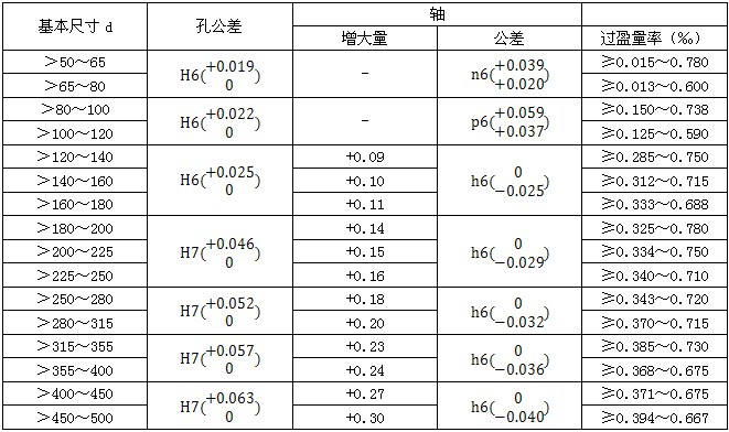 爲瞭保證齒輪的傳動精度,和防止齒輪孔與軸之間可能因産生間隙,而導緻腐蝕現象,所以當齒輪及採用H6,H7公差帶,軸採用h6公差帶時 ,将軸的名義尺寸加一增大量,進行輕熱配合,表1-146中所列的輕熱壓配合尺寸,僅适用於鍵聯結的情況下。