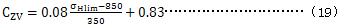 根據14.2中的規定,速度系數ZV是考慮節點線速度對齒面疲勞(點蝕)強度的影響。圖4中的速度系數曲線是節點線速度配對齒輪中較軟齒輪材料σHlim的函數。ZV-可用式(18)和式(19)計算,公式和圖4中的曲線相一緻。