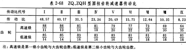 傳動比共有9種見表2-68。我國所有生産(chǎn)廠生産(chǎn)的此種減速器的實際傳動比和公稱傳動比的偏差不大於(yú)±4%,見表2-69。