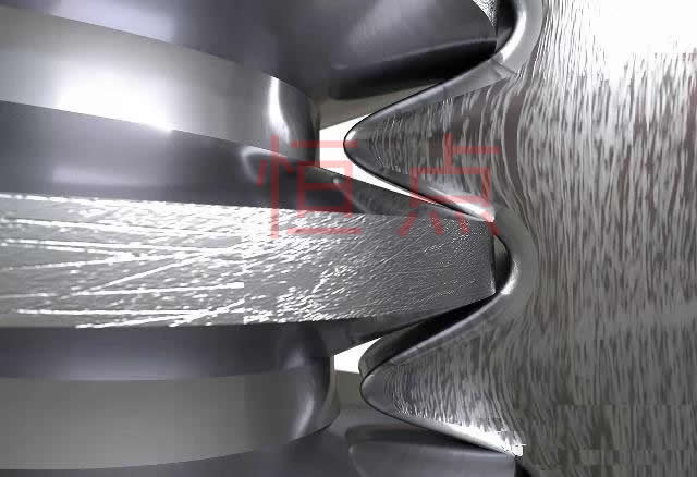 螺旋齒輪(交叉斜齒輪),它們的運動以楔形或螺旋爲主,齒面高度滑動,易於裝配,具有相同的法向徑槽 ,它們可以朝同一個方向,也可以朝相反的方向。