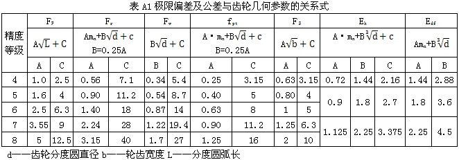 表A1極限偏差及公差與齒(chǐ)輪幾何參(cān)數的關系式