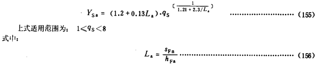 應力修正系數YS僅能與齒形系數YF聯用。對於齒形角αn爲20°的齒輪,YS可按式(152)計算。