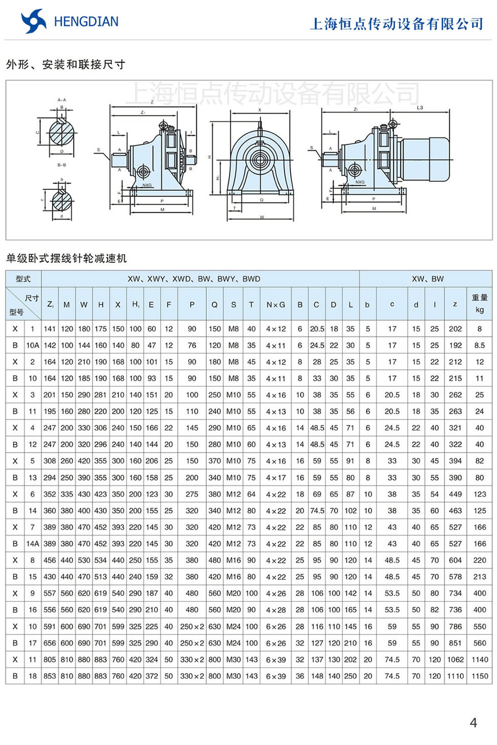 3 - X/B系列減速機輸出許用扭矩表 4 - 單級,雙級擺線減速機型号規格選擇表