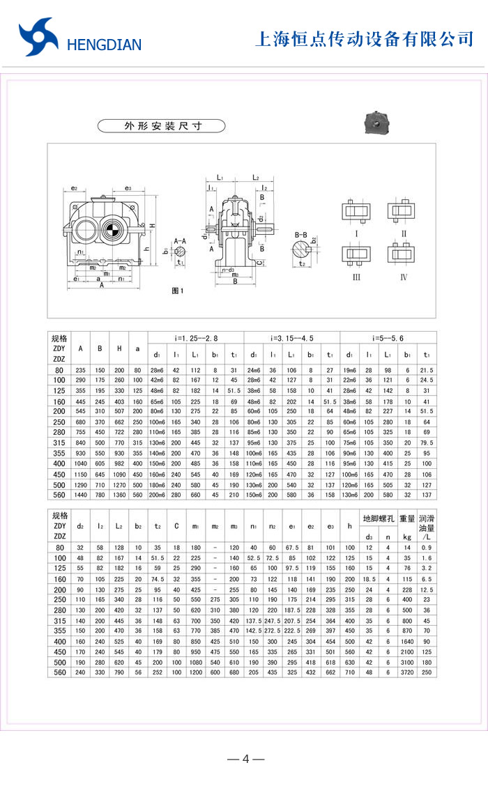 3 - ZDY傳動比表 4 - ZDY安裝尺寸圖